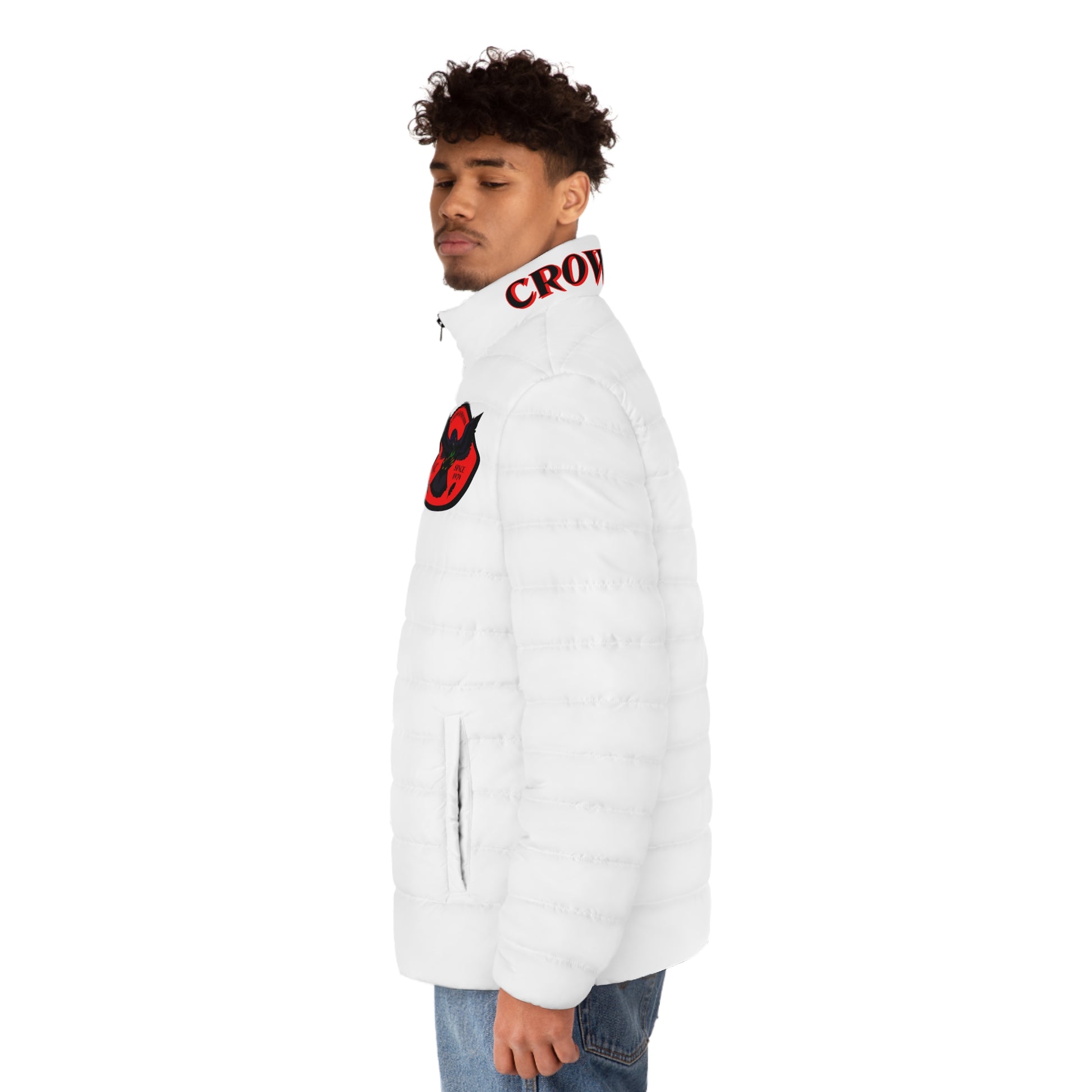 Men's CROWGODSHI 2nd GEN Puffer Jacket, WHITE W/ RED LOGO