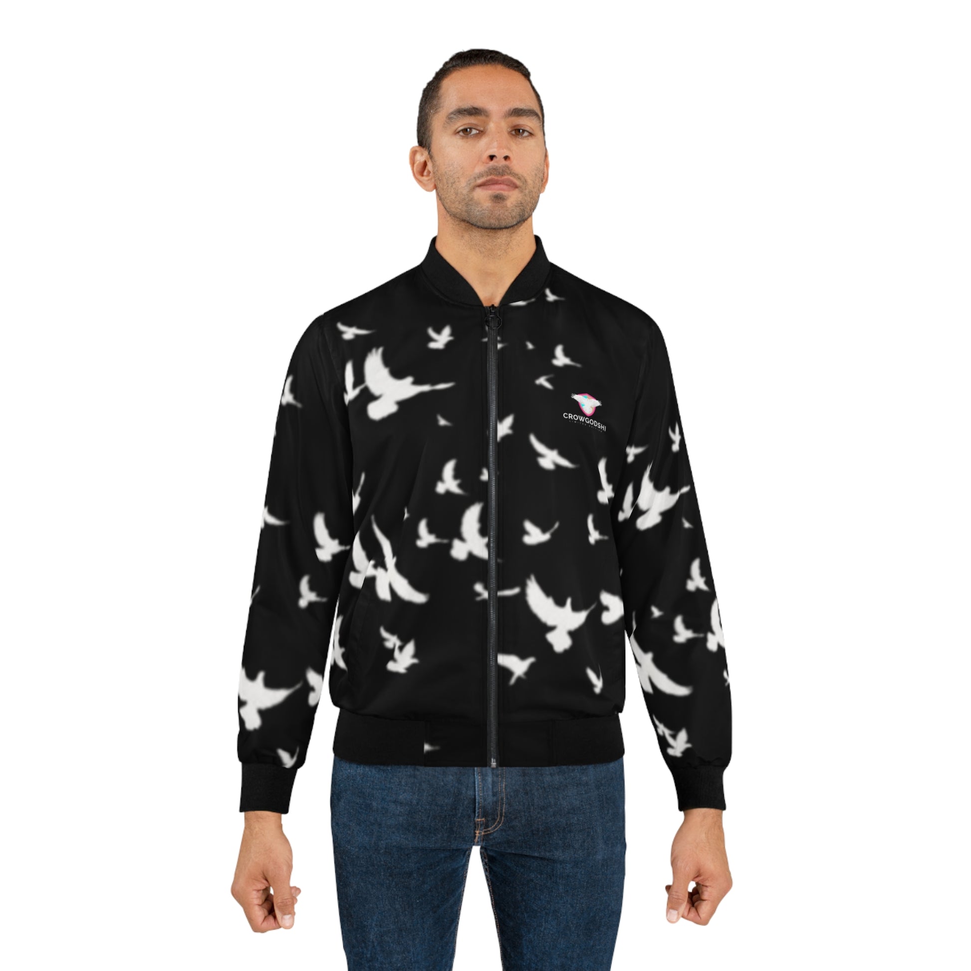 Limited Edition Men's Bomber Jacket with Soaring Birds Design