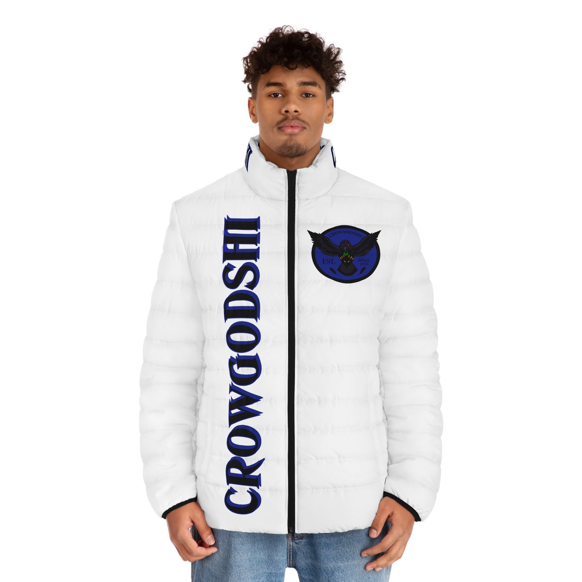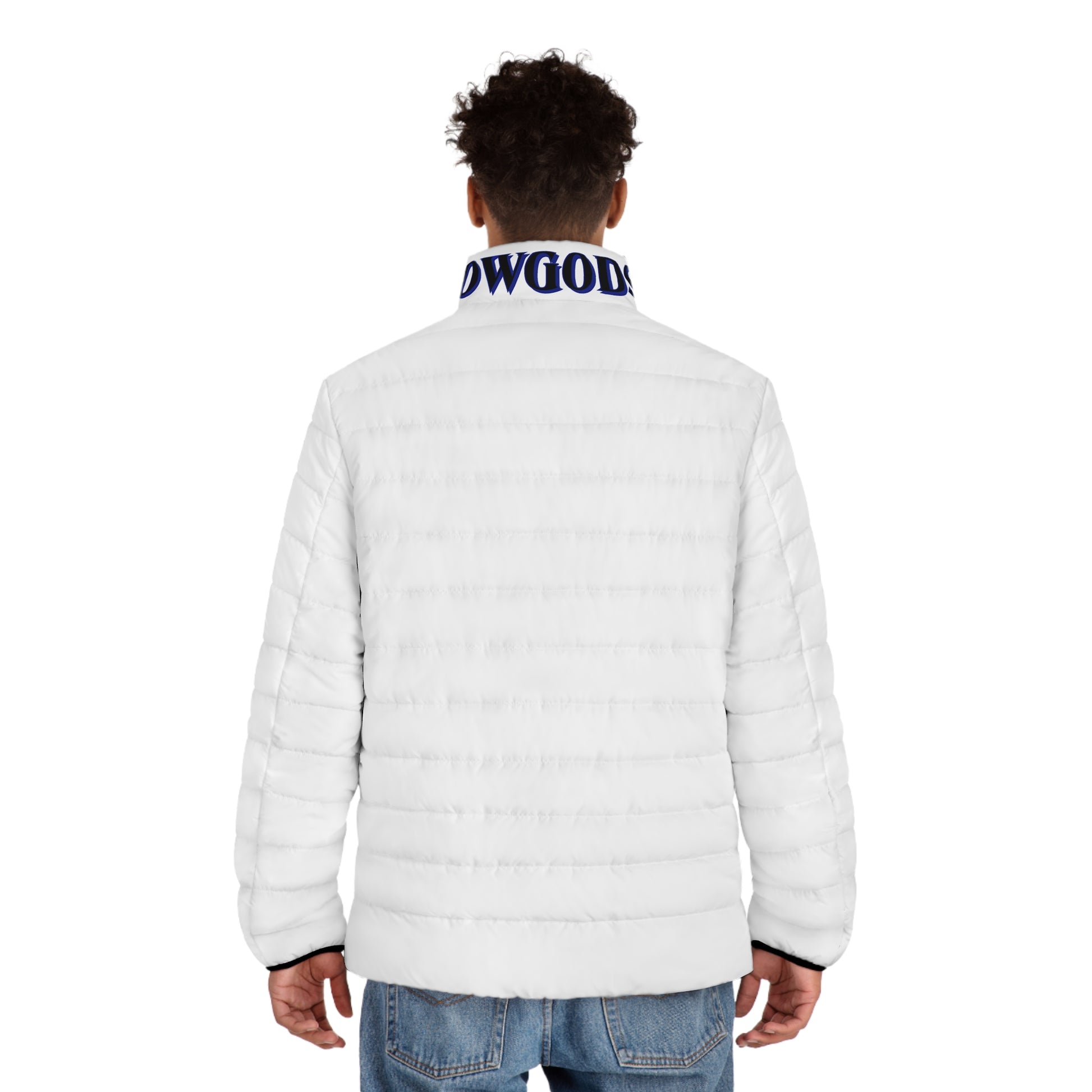 Men's CROWGODSHI 2nd GEN Puffer Jacket, WHITE W/ DUKE BLUE LOGO