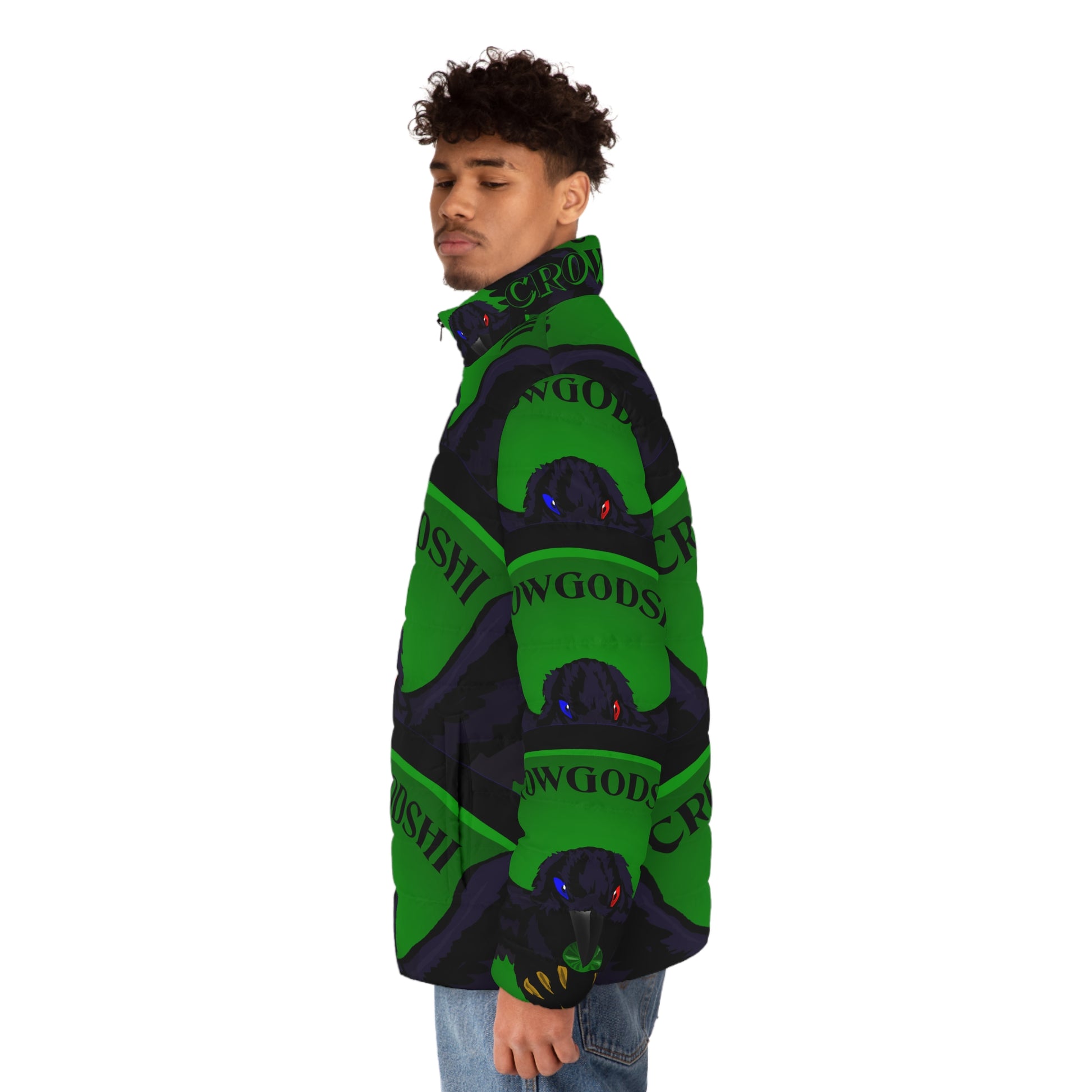 Men's Special Edition Crowgodshi Puffer Jacket, GREEN LOGO